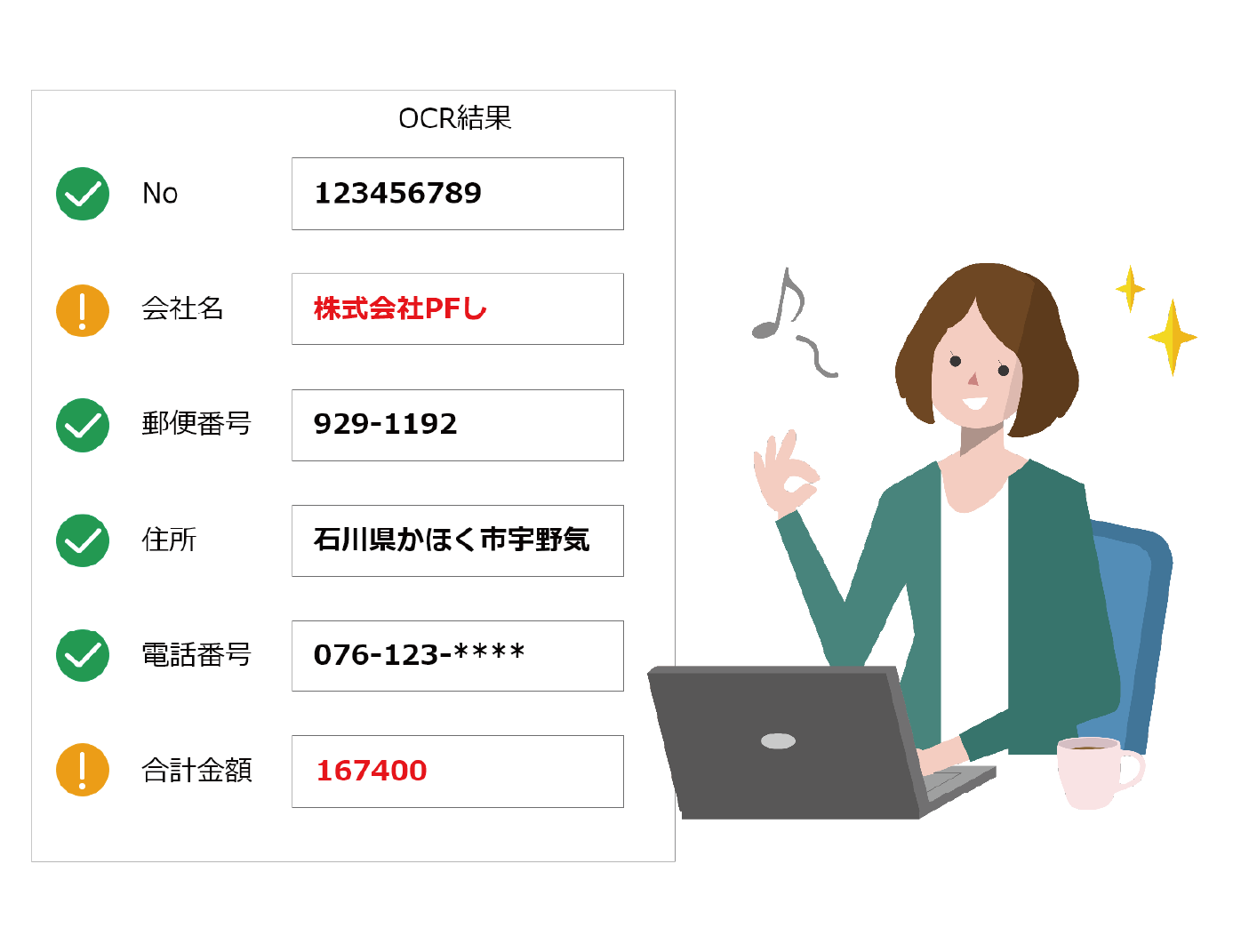 手書きやFAXの文字もAI-OCRが正確に読み取り。